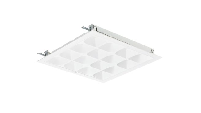 Recessed, 620x620 mm, Concealed profile ceiling version, Steel, White, Signal white (RAL9003), Recessed, Sensor ready driver Interact System ready for central emergency lighting, Interact SNS210 sensor, 3400 lm, 29 W, 172 lm/W, 4000 K, (0.38, 0.38) SDCM ≤3, UGR16, L65≤3000 cd/m², Wide beam office compliant, White reflector, Opal, Polycarbonate, IP20/40 | Finger-protected, Emitting surface, IK03 | 0.35 J reinforced, Safety class I, Push-in connector and pull relief, TP(b) diffuser flammability class, DC operated central emergency lighting
