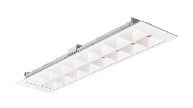 Recessed, 1200x300 mm, Visible profile ceiling version, Steel, White, Power supply unit with DALI interface, 4800 lm, 38 W, 121 lm/W, 4000 K, (0.38, 0.38) SDCM <3, CRI>90, Wide beam office compliant, Clear, Polycarbonate, IP20/40 | Finger-protected, Emitting surface, IK02 | 0.2 J standard, Safety class I, 2 Push-in connector 5-pole