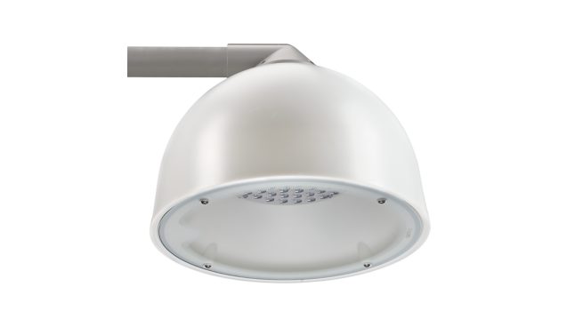Copenhagen City Comfort LED large, side-entry, 45 W, D460 mm; H360 mm, 5935 lm, 3000 K, CRI80, Programmable (via DALI or NFC) stand-alone dimming, Distribution wide, Safety class II, IP66, MSP, SRG6-10